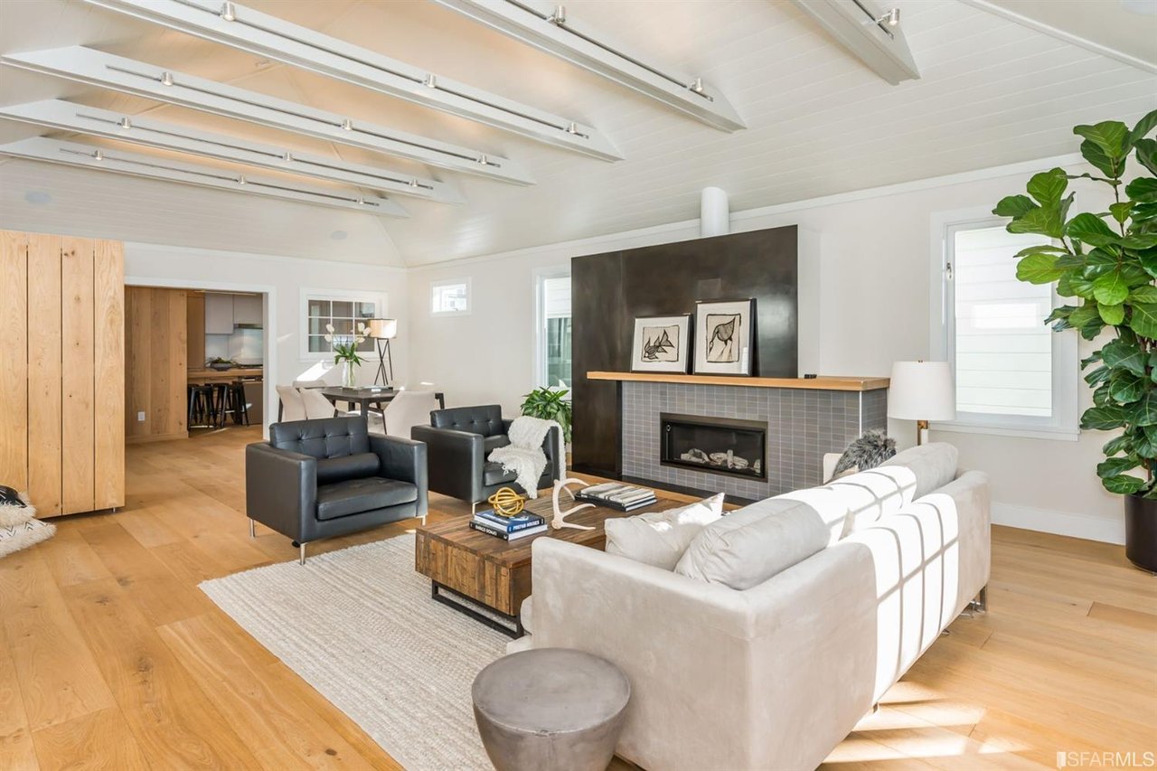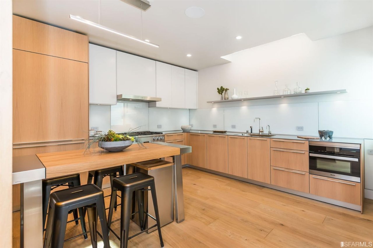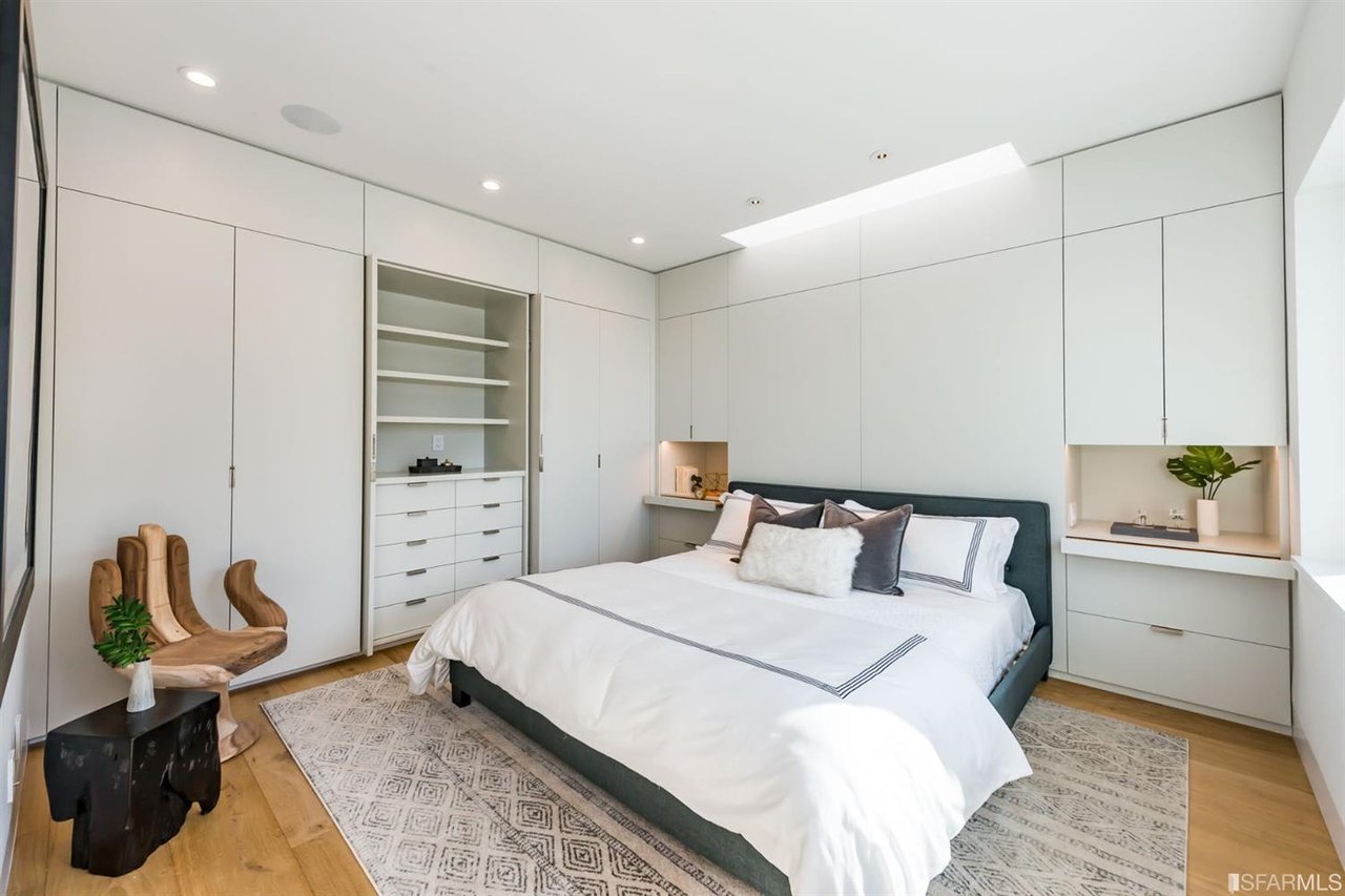 This 1907 post-earthquake Craftsman timber home has been gloriously restored and enlarged into a state-of-the-art 21st century residence. Three light-filled living levels above a massive underground garage with 2 side-by-side parking spaces and separate storage. Light-filled main level with private entrance has a huge open living/dining area with lit cathedral ceiling & Heath Ceramic gas fireplace, Miele/SubZero skylit country kitchen and powder room. Top floor master suite with hidden safe has Golden Gate Bridge views. Downstairs has 2 Br's 2 Ba's and laundry room. Wide-plank solid French white oak floors, smart-waiter, LED lighting, Nest thermostats and integrated speakers make this the quintessence of Russian Hill elegance.